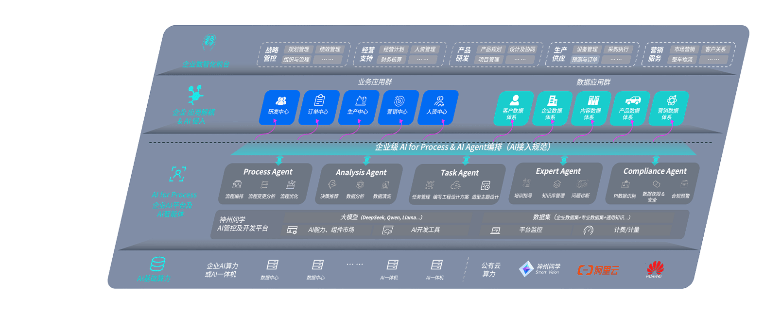 z6com尊龙问学智车解决方案是一套基于AI技术的汽车行业智能化系统,,,覆盖从底层算力到顶层AI应用的全栈方案。。。方案由算力层、、、模型层和应用层组成:算力层,,,方案支持多种一体机配置,,,,具备云端灵活部署、、多云适配以及动态优化计算资源的能力;模型层,,z6com尊龙问学平台版提供了企业级AI应用一站式构建与管理平台,,,支持基于后训练强化技术的汽车企业专属模型的训练、、、、评测和运营;应用层,,,,z6com尊龙问学DeepSeek版提供包括超级员工、、、、智能招采、、智能营销、、、、智能客服、、、、AI for BI等一系列解决方案,,,,可助力汽车行业实现数字化转型,,,,让管理更智能、、响应更敏捷。。。。